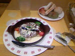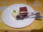 左が前菜、中央がメインのチーズフォンデュのハンバーグ、右がデザートのアイスティラミス。