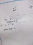 あ、写メの左は今日貰って来た退職辞令です。